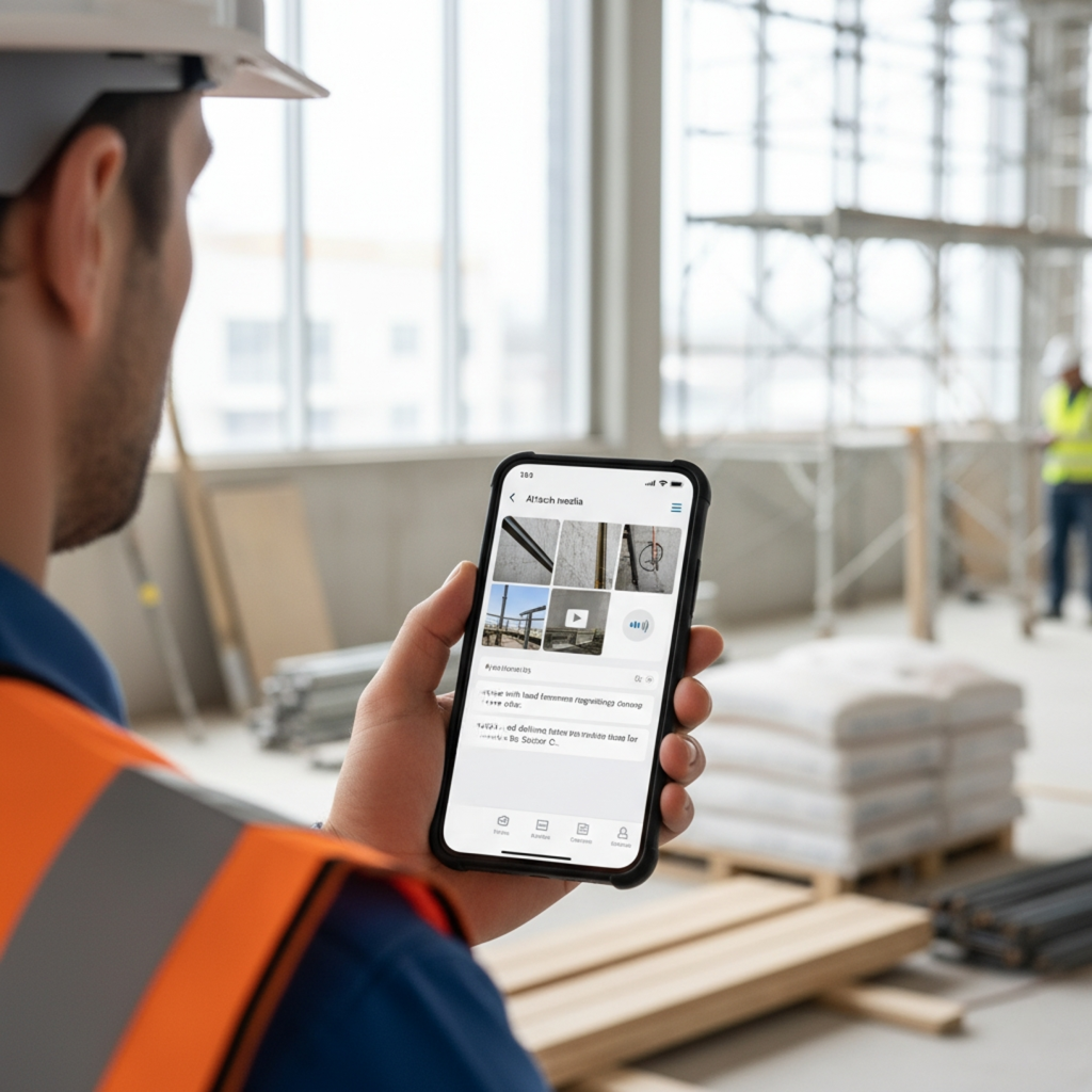 Add multiple images, videos, and voice notes to capture complete on-site context. Voice notes are automatically transcribed into text, making it easier to review, search, and include details in reports.